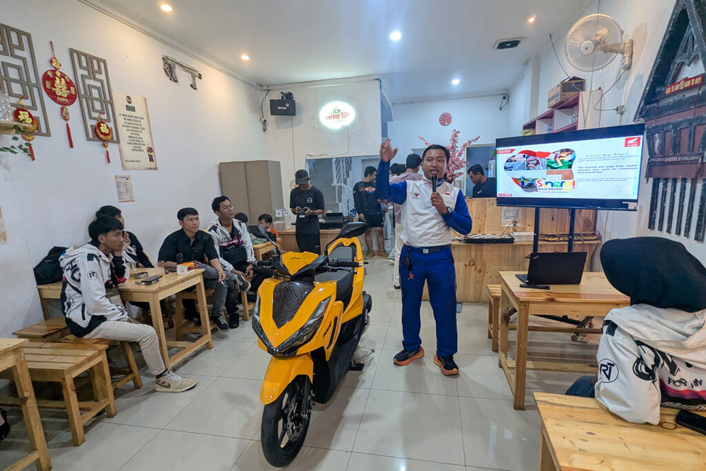 Diskusi berlangsung interaktif, dengan peserta aktif berbagi pengalaman seputar riding hingga modifikasi motor.