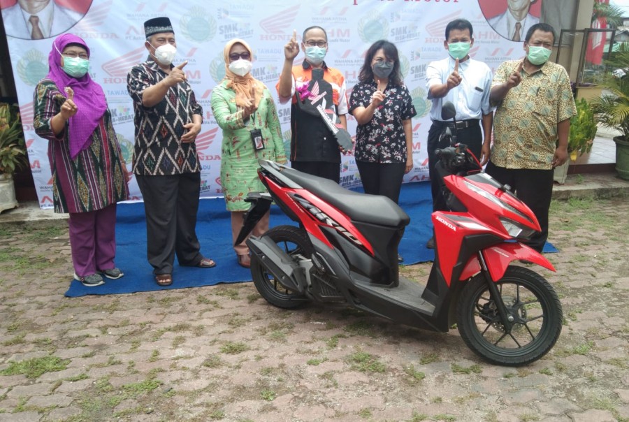 Pada waktu bersamaan, SMK Taman Siswa juga dapatkah satu unit Honda Vario 150 yang akan digunakan sebagai media praktek para siswa SMK Taman Siswa. Langkah perhatian ini langsung dapatkan apresiasi positif dari Dinas Pendidikan Jakarta Pusat dalam sambutan singkat perwakilannya.