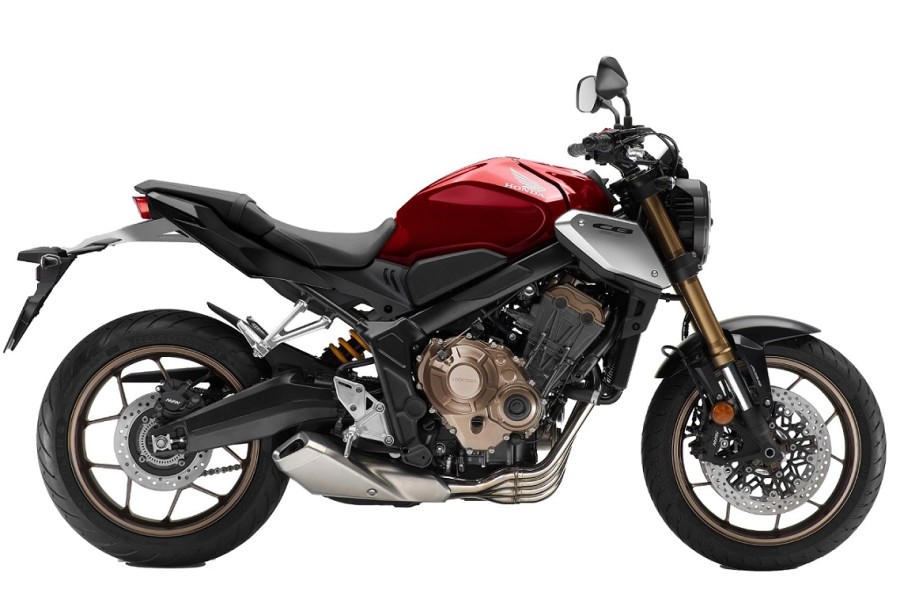 Sementara itu, CB650R menjadi andalan big bike sport Honda yang mengusung konsep Neo Sport Café. Hadir dengan kombinasi warna terbaru pada pilihan Candy Chromosphere Red dengan dominasi warna merah pada bodi dengan front fender berwarna hitam semakin memperkuat tampilan sensasi sporti pada model ini.